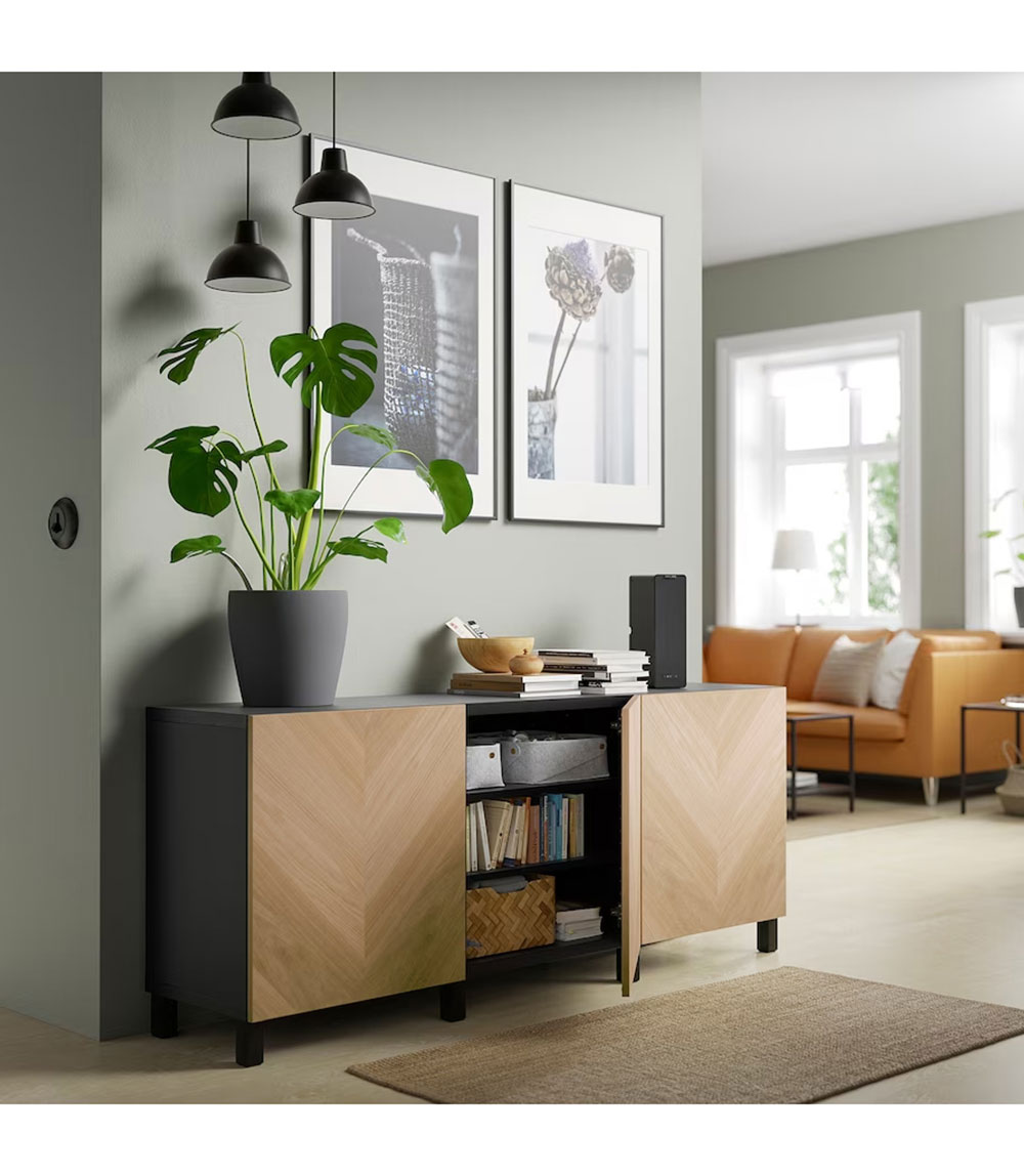 TV bench with drawers and door, black-brown